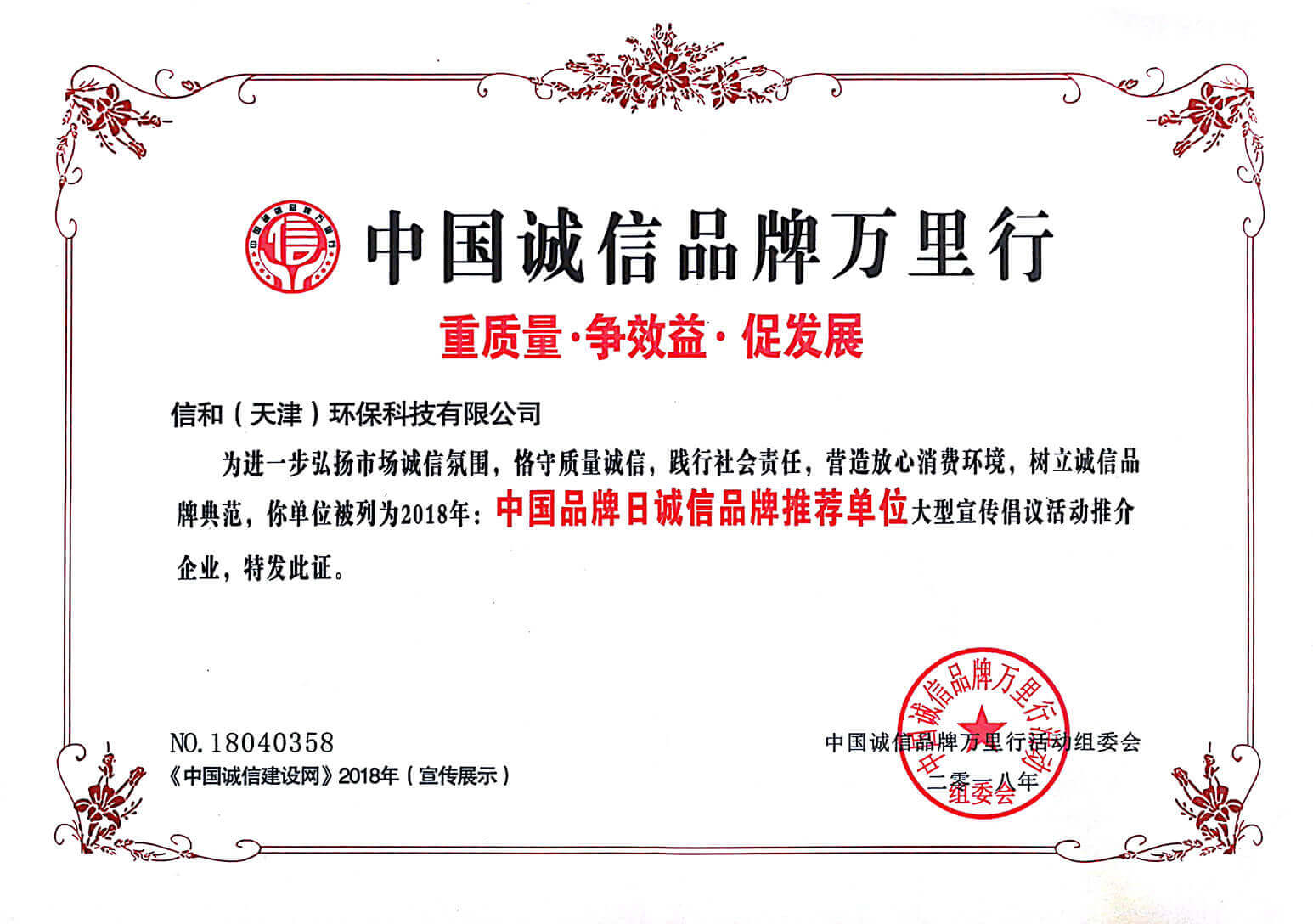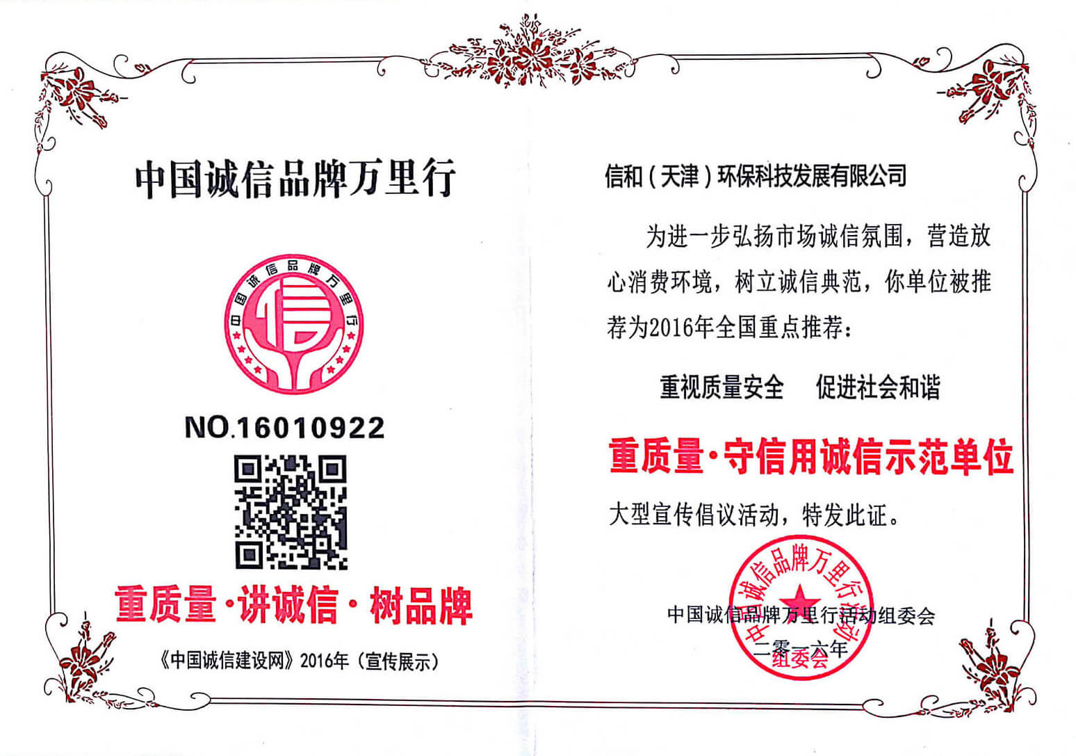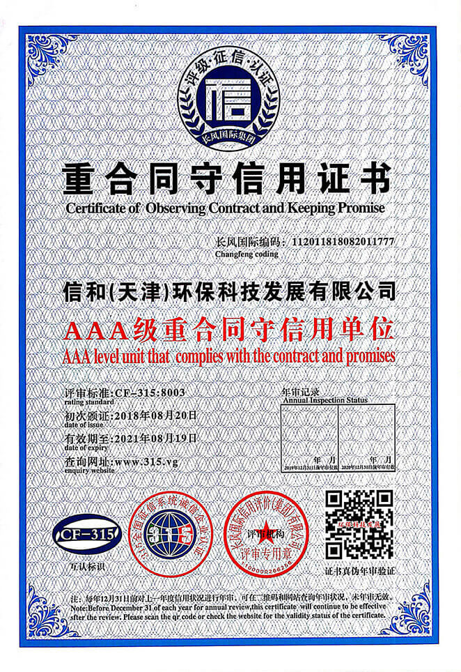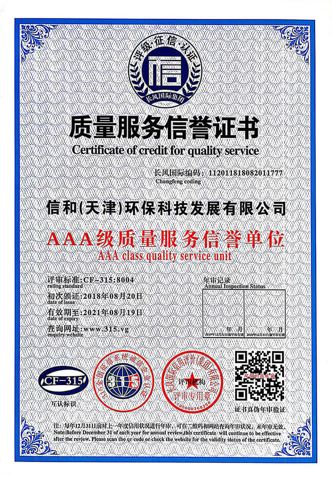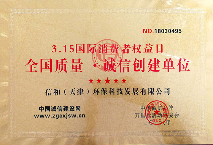 “質(zhì)量就是生命”。信和重質(zhì)量、守信用,被中國誠信品牌萬里行推薦“誠信示范單位”、“AAA資信等級”、“AAA級誠信經(jīng)營示范單位”、“誠信經(jīng)理人榮譽(yù)證書”、“誠信企業(yè)家榮譽(yù)證書”、“中國產(chǎn)品質(zhì)量放心達(dá)標(biāo)企業(yè)”、“誠信品牌聯(lián)盟會員單位”、“中國質(zhì)量誠信AAA級品牌企業(yè)”、“中國百強(qiáng)優(yōu)秀企業(yè)”、“節(jié)能環(huán)保推廣產(chǎn)品”、“全國科技創(chuàng)新企業(yè)”等榮譽(yù)稱號。